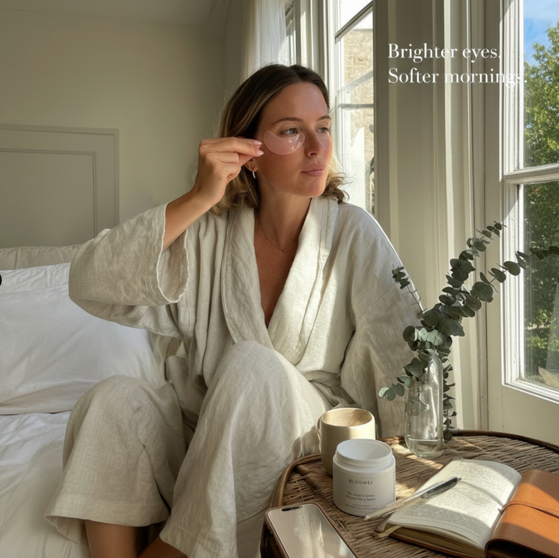 Los Parches de Péptidos de Colágeno de Bloomei son mascarillas de hidrogel de nivel clínico con péptidos de colágeno + cafeína, adenosina y niacinamida—los mismos ingredientes de confianza en la dermatología coreana. Nuestro hidrogel único no se resbala; sella estos activos contra tu piel para que se absorban profundamente en lugar de evaporarse como las cremas.